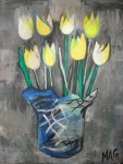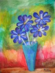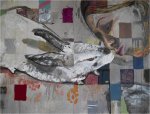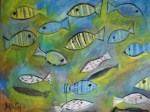 Deciding when a painting is finished can be tricky, but I often have a strong feeling about it when the time comes. Basically, I keep working on the painting, hang it up and let it dry, reflect on it for a while, work on it some more, let it sit some more. The time it takes is indeterminate. But each time I see the painting, I’m either overwhelmed by an urge to change something, or I accept and appreciate it for what it is. After I had been looking at it for a while, it either grows on me or annoys me. If it annoys me, it’s not finished yet.