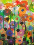 The main technique I use is the layering of thin layers of acrylic paint. I will explain this in a lot of detail in future posts, and will provide tutorials on how to experiment with this method. There are many aspects of this technique that I enjoy. First of all, it makes everything changeable. If I don’t like something I can just paint right over it. If I don’t like any of it, I can paint over the whole thing. White paint is especially useful, because it lets you start with a blank slate. Secondly, the building up of successive layers has a lot of benefits. It allows you to refine an aspect of an image by tweaking it slightly in increments. The texture that develops is visually interesting, and you can often see through many layers at once and experience an interplay of colors hitting the eye.