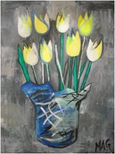 I use color to define objects in my painting. I’m not sure how a colorblind person would view my paintings, and I wonder if the major effects would be lost in their eyes. Complementary colors are especially important to me, because of the way their juxtaposition makes objects “pop.” Sometimes, I intentionally restrict my color palette to get a specific mood or effect. To do this, I pull out some paint tubes and force myself to use only those I pulled out to paint a specific image.