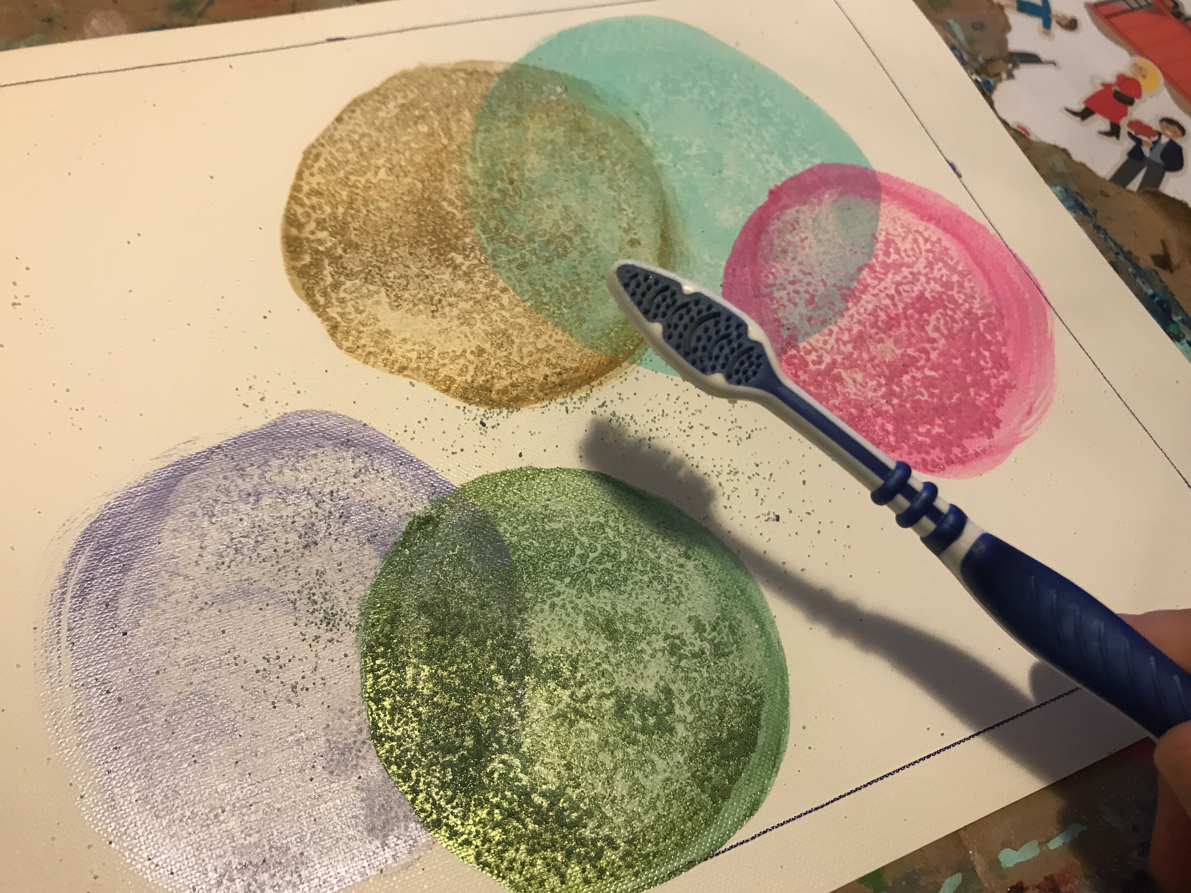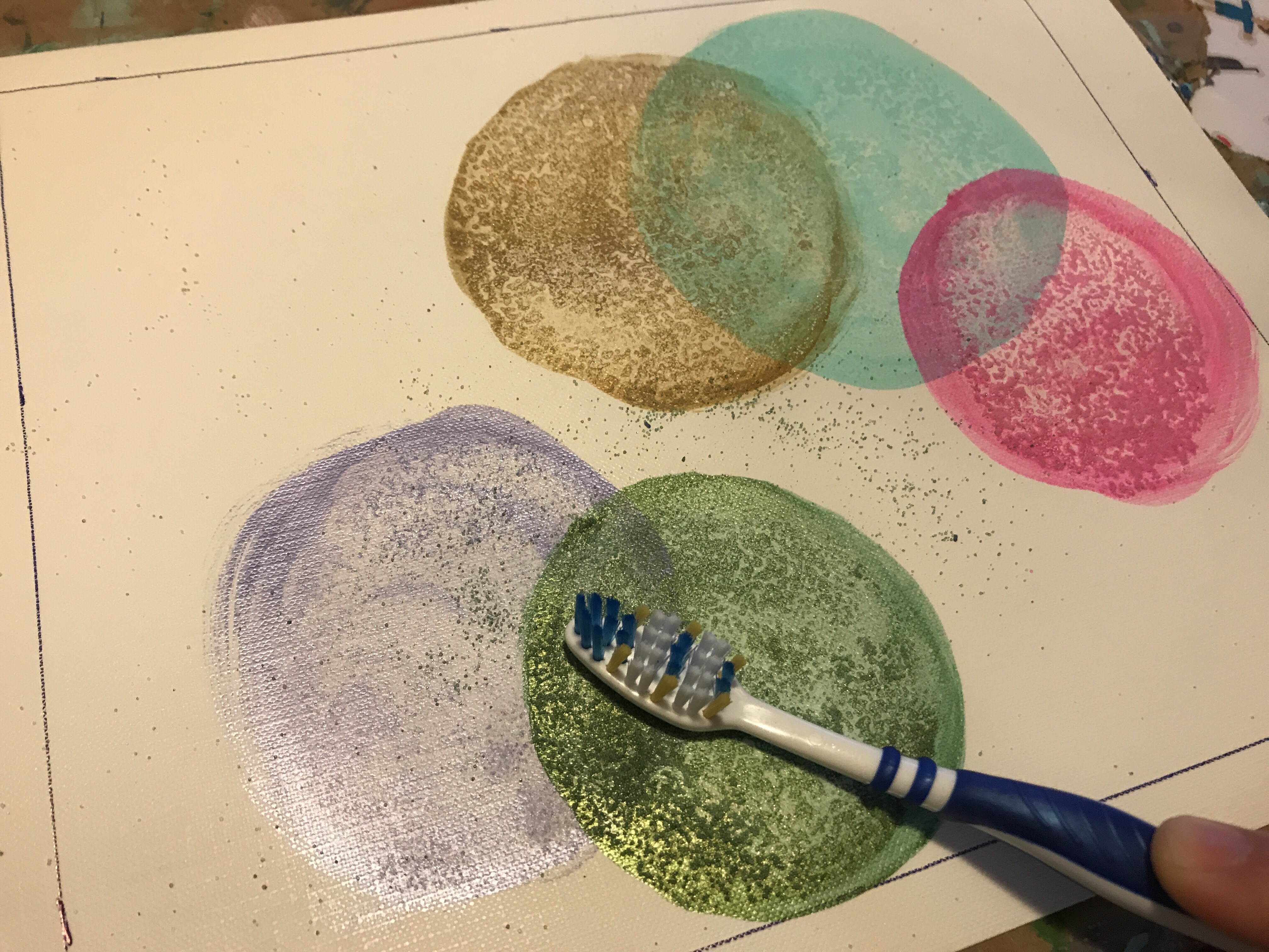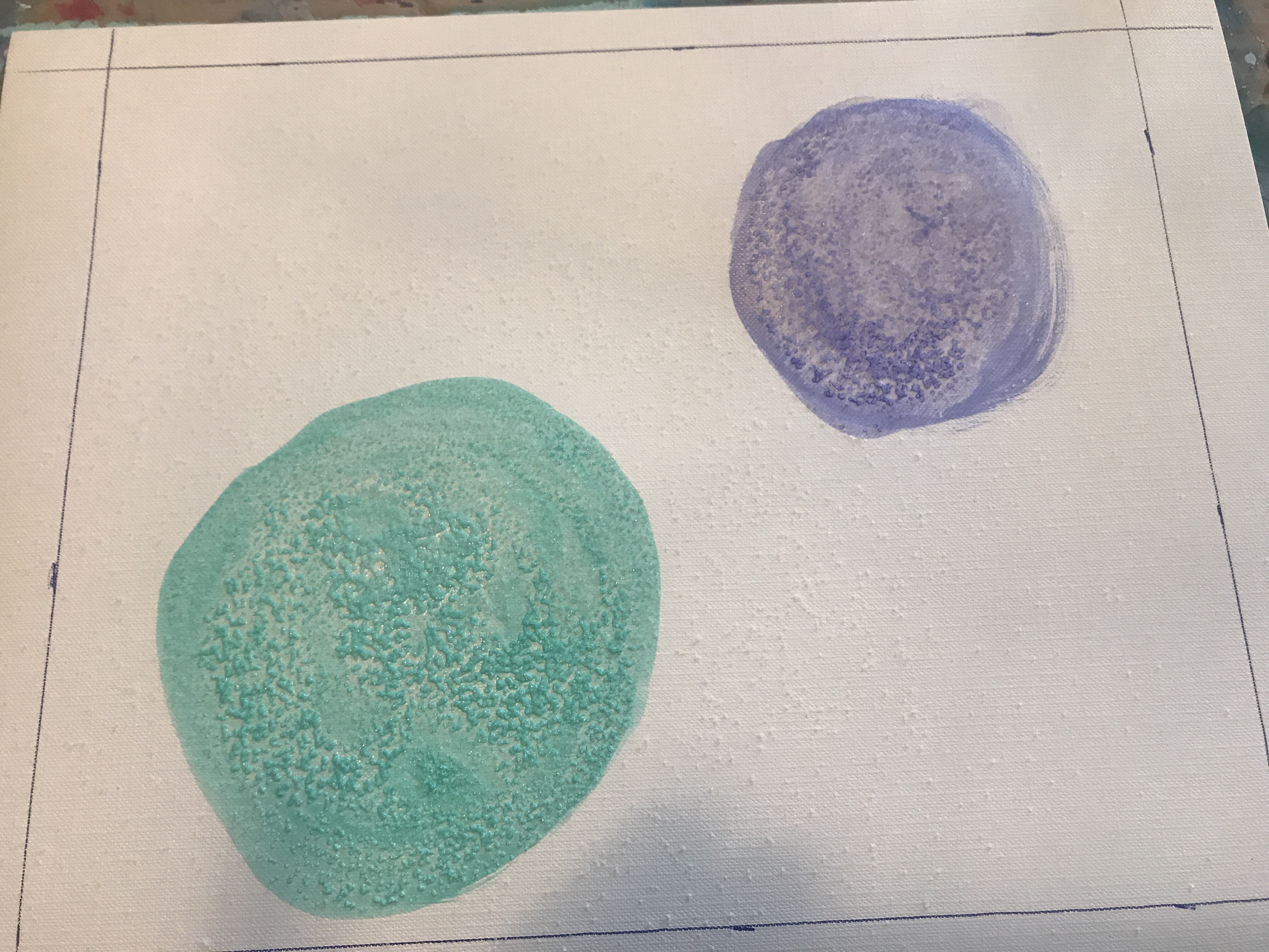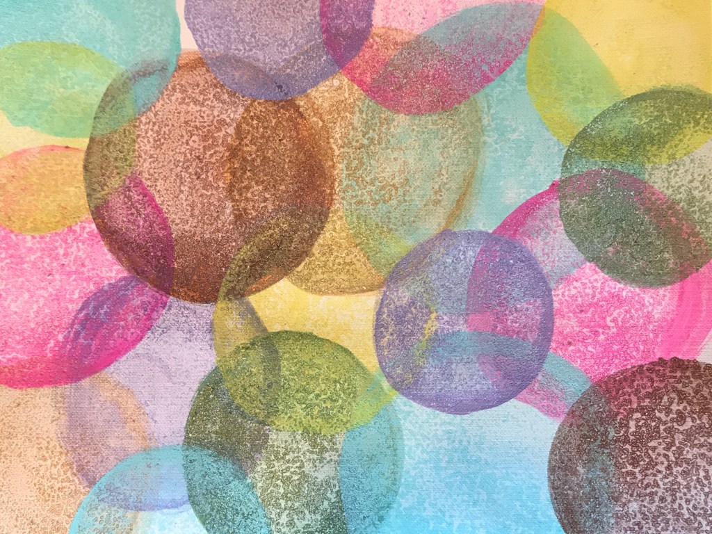 I’m going to be making circles with acrylic paint, applying salt for texture, and layering more circles. I’m making sure the paint is mixed with a lot of water so that the salt has something to soak up.